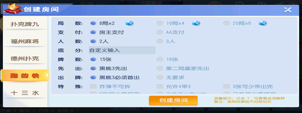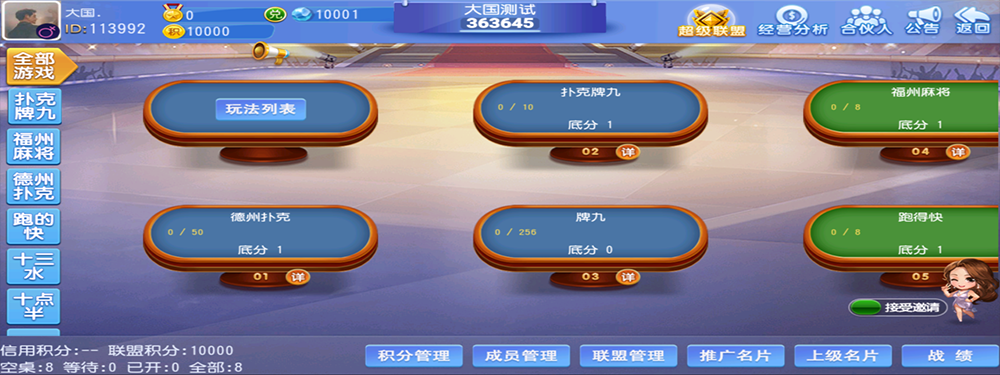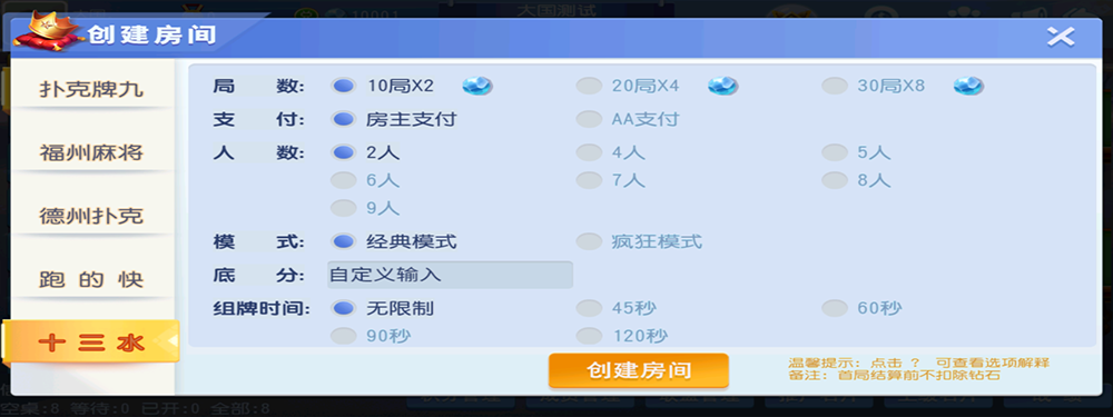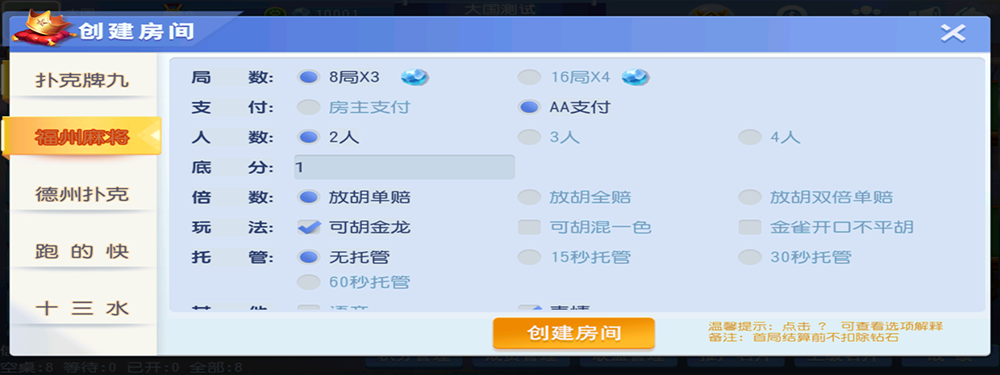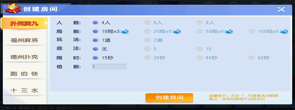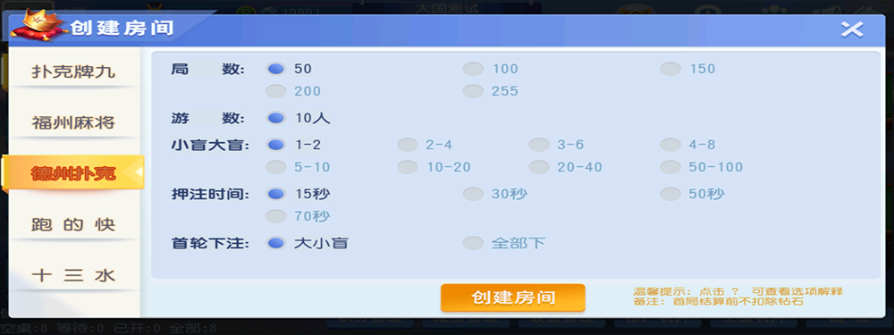 德州扑克 福州麻将 跑得快 十三水 十点半 牛牛 牌九