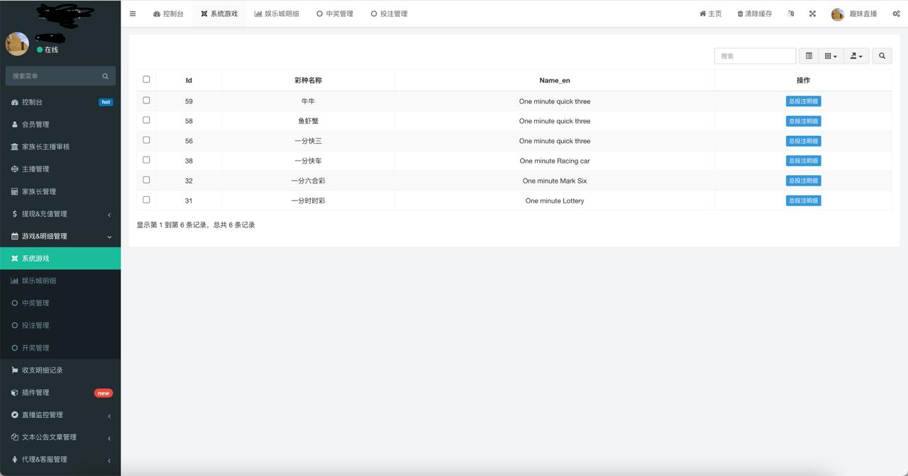 演示截图:源码描述:单语言娱乐城(综合盘)全部接口游戏,彩票...
