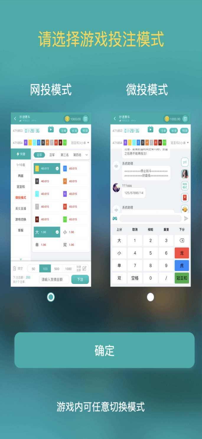 程序分为网投模式和微投模式,就是下注的形式和洁面不一样,彩票带奖源、开奖视频动画和跟投功能