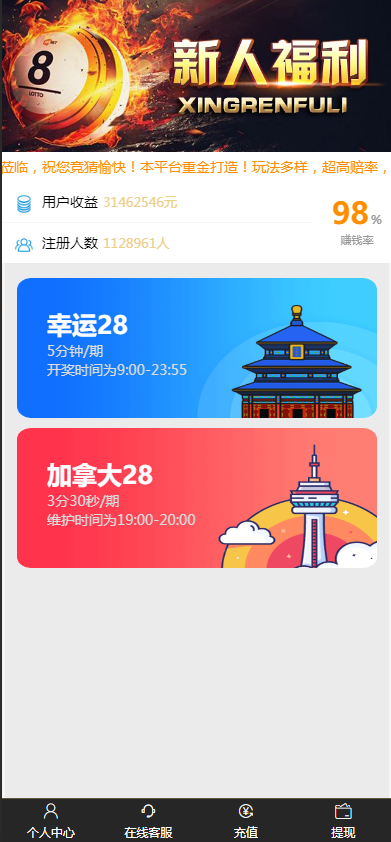 源码描述:加拿大28.幸运28,可添加各种28,后台带预彩控制