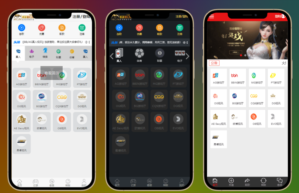 演示截图:源码描述:单语言娱乐城(综合盘)全部接口游戏,彩票...