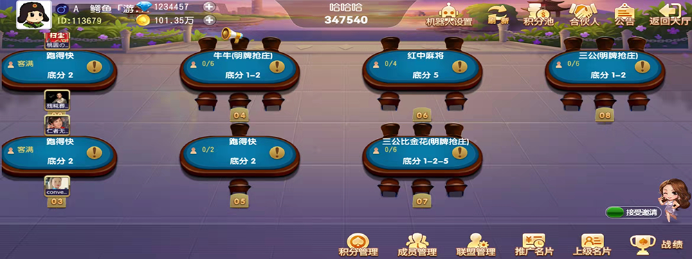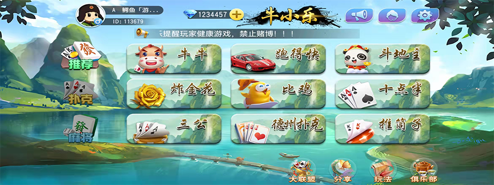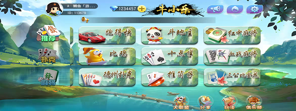 源码描述:牛小乐:牛牛,三公,跑得快,红中麻将,三公比金花,血站麻将,都带陪玩机器人,其它陪玩机器人还在研究中。子游戏有:牛牛,跑得快,斗地主,扎金花,比鸡,十点半,三公,推筒子,红中麻将,血战麻将,三公比金花