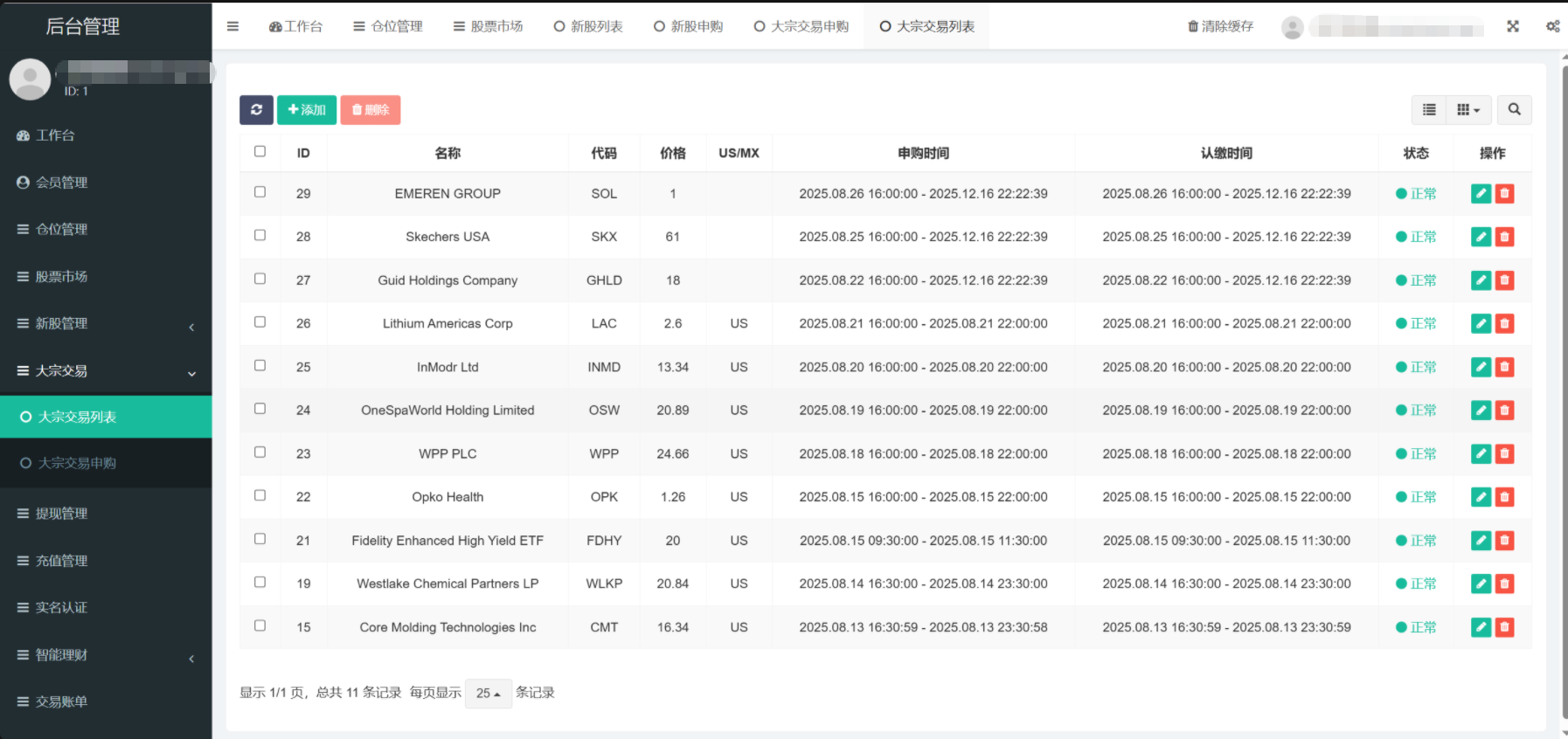大宗交易还有申购功能,后台可以自定义添加多语言,使用xlsx表格可以批量导入