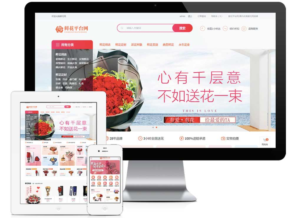模板介绍特点:商城 鲜花配送 商城系统鲜花商城平台页面简洁大...